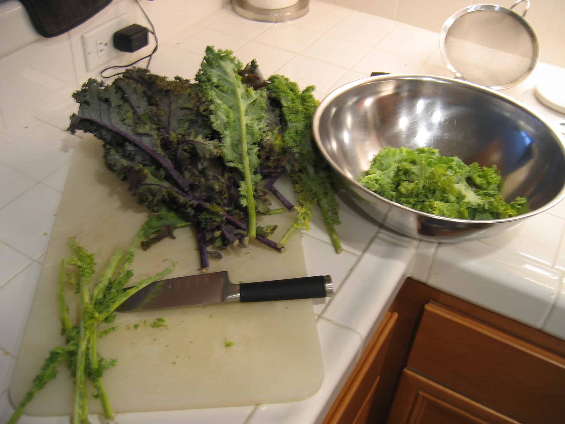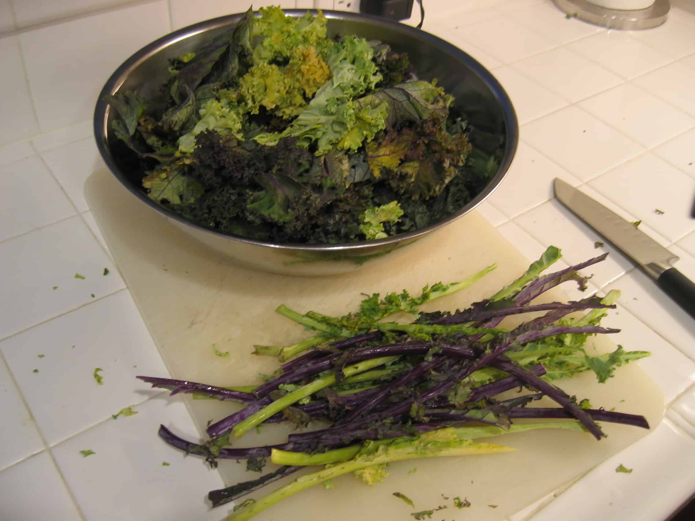 - A bunch of kale, green or purple washed and dried well
